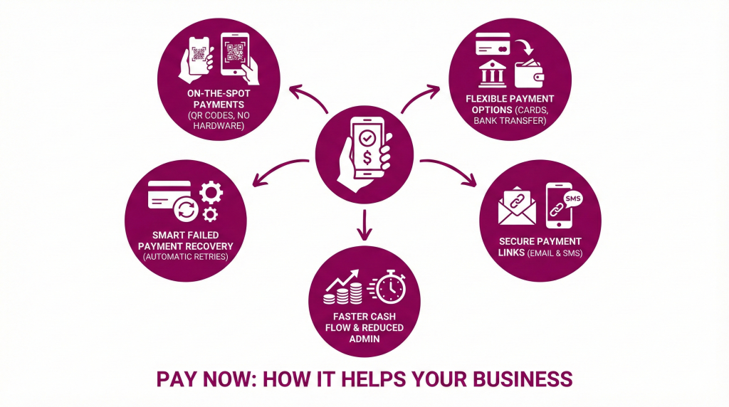 Payments arrive sooner, reducing the time your team spends chasing overdue invoices and improving day-to-day cash flow.