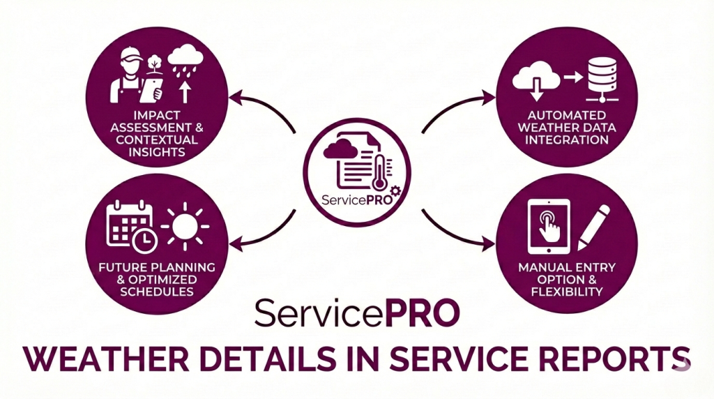 - Automated Weather Integration: Integrate weather data APIs with ServicePRO to automatically fetch and record weather details for the service location at the time of the report.